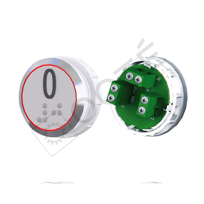VEGA Achille Cat. 1 (EN81-71) Push button for TOPAZ Car Operating Panels (COP). 12/24 V screw-terminal version, compatible with any controller accepting a dry-contact input, suitable for like-for-like replacement or for upgrading a non-vandal-resistant button.