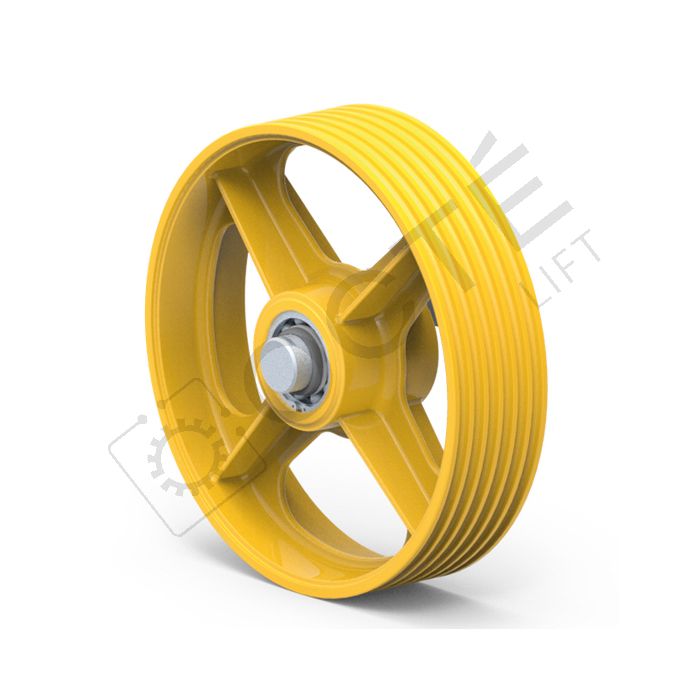 Poulie à goussets Ø450 4xØ11 P=17 axe Ø50 O=330 EE=000 S=000